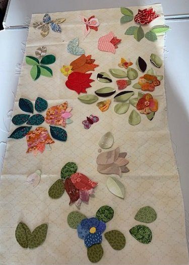 We ended the day with ideas on how to lay out our appliqué pieces on our background fabric and methods of stitching by hand or machine and embellishment with perle thread.