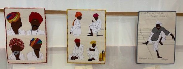 The quilts were from groups or individual quilters, some of which I had seen at Ardingly. There were some very colourful quilts from Pascale Michalski, wonderful to look at. Gillian Travis showed her “Indian Sketchbook Quilts’. How the Indian figures were gradually made. Fascinating but not work that I could do. My favourite quilt was “Reverie des Fleus by Christine Porter of Cabot Quilters. Photographs are below of pieces of work.