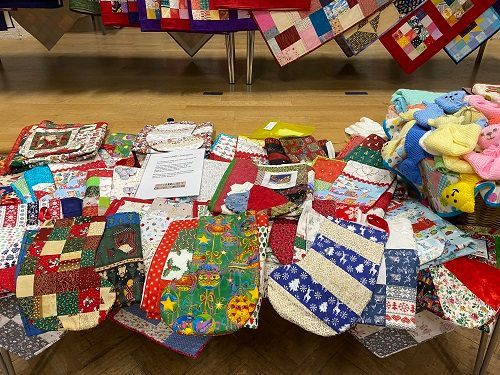 As Shirley Quilters supports the Linus Project Charity, there is always a large display of quilts made for children in Hospital. This years' display also included Bonding Squares, Levi Lovies (a small knitted cuddle square with an animal head at one corner), mini Xmas Stockings and Quilts for Premature babies born during the festive season.