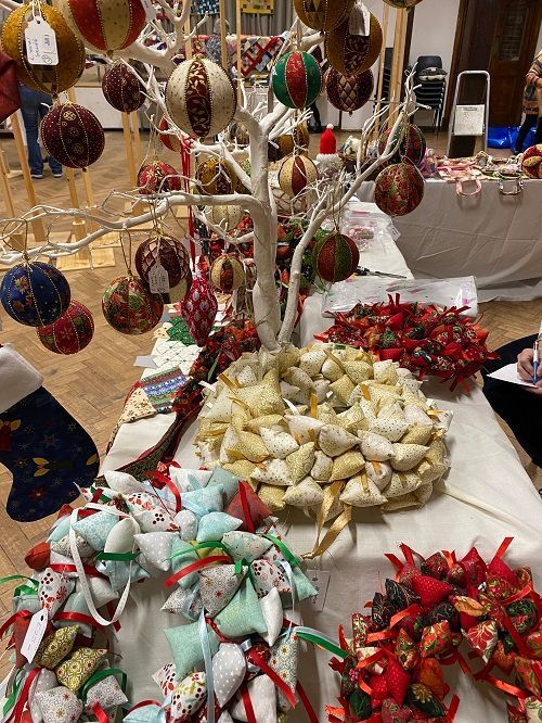 As usual the Xmas Sales Table was available displaying Wreaths, Fabric Xmas trees, Baubles, Mini Quilts and many other items for Christmas Stockings. All items were beautifully made and useful.