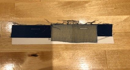 Then she sews the binding on and from this cuts 2 ½” of ( the border fabric is 2 ½” wide) and uses this to create the join as shown in the photo above. She then tests this before sewing the rest of the border. Jill had prepared samples of the binding that members could take home.